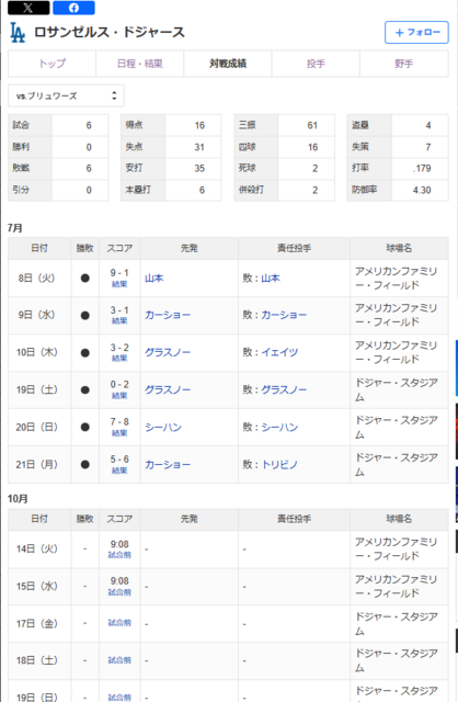 スレッドタイトル:ドジャースvsブリュワーズ